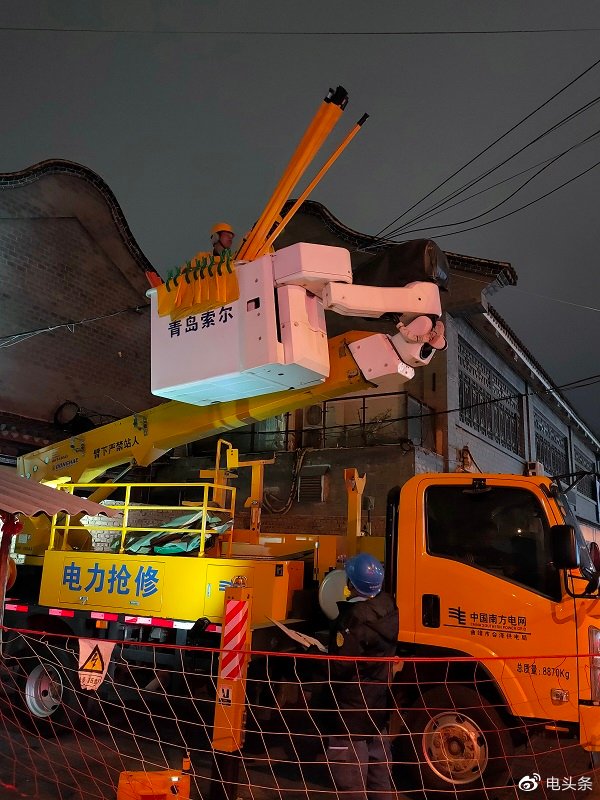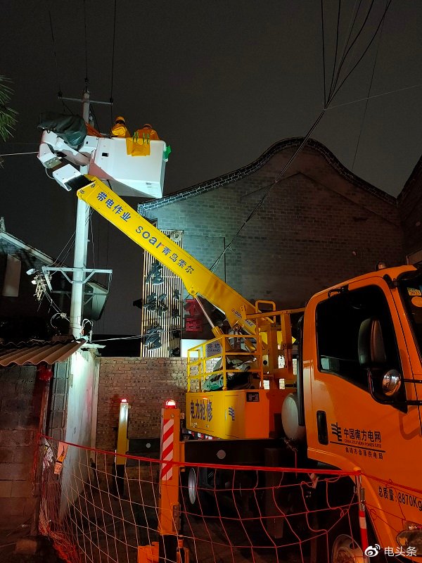 新浪新闻云南曲靖2023年1月23日讯(通讯员 浦昭陆祥 杨波)1月18日夜间,南方电网云南曲靖会泽供电局采用带电作业法,成功对10千伏城东I回线酱菜厂变压器完成不停电更换,在群众目所不及的地方持续“给电”,最大限度减少停电范围和时间,持续提升群众的电力获得感。