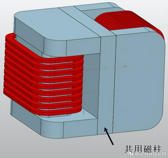 三是磁芯一般采用标准磁芯,公共磁轭磁通叠加,磁通密度更高。
