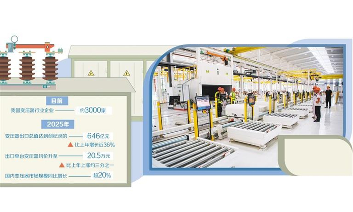 重庆市涪陵区的一家变压器生产企业,工作人员在车间内调试新生产线。新华社记者 唐 奕摄被称为“电力心脏”的变压器,正成为海外市场的紧俏产品。据海关总署数据,2025年我国变压器出口总值达到创纪录的646亿元,比上年增长近36%;出口单台变压器均价升至20.5万元,比上年上涨约三分之一。同时,作为全球重要的变压器生产基地,国内多家头部企业订单出现大幅增长。市场对变压器的需求为何如此巨大?订单大增的同时,企业产能是否跟得上?