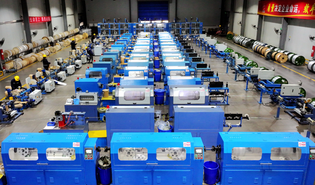 2025年12月2日,在位于江苏省海安经济开发区的南通市百威电气有限公司,工人在自动化生产线上加工高电压、大容量变压器上使用的电磁线等订单产品。顾华夏摄(中经视觉)